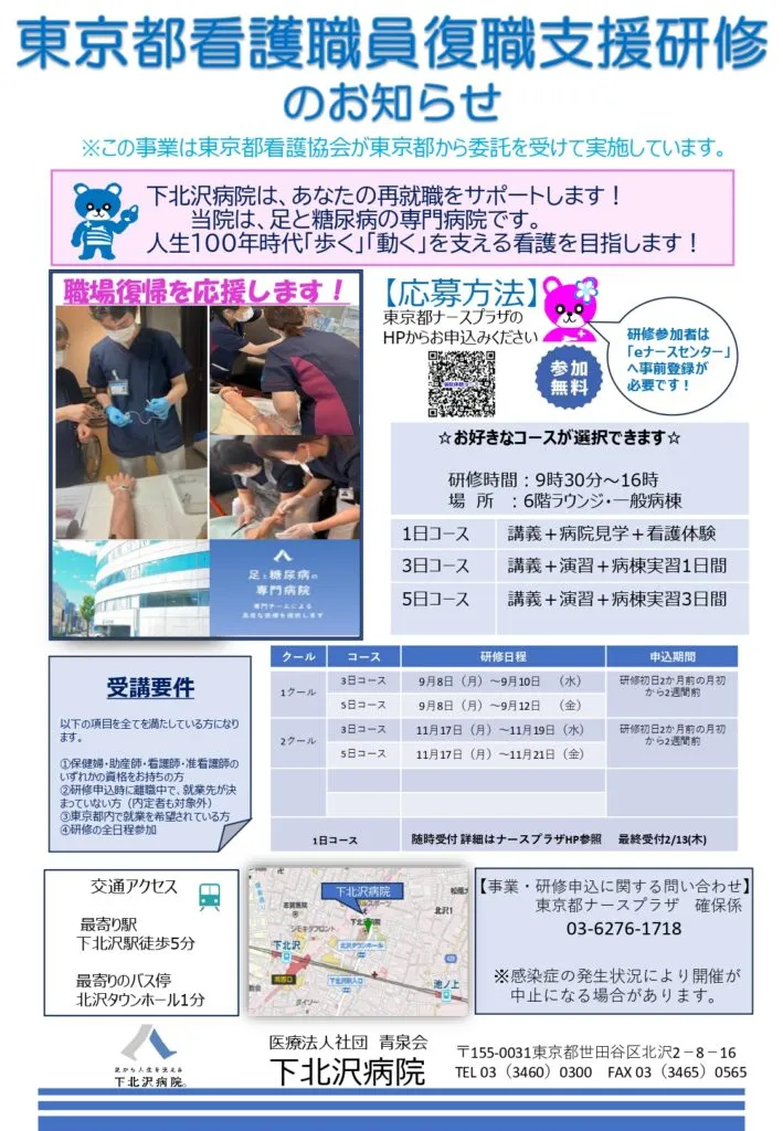 東京都看護職員復職支援研修を下記内容にて行っております。